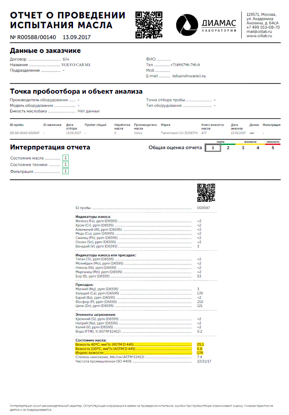 | Вязкость при 40 °C | 47.1 mm²/s |